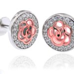 Aretes de plata esterlina con piedras y flor. Bañado en oro rosa y rodio.
