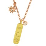 Collar de plata esterlina con placa grabada y colgante de estrella. 45+3cm. Baño de rodio.
