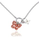 Collar de plata esterlina con dije de mariposa y colgante. 42+3cm. Bañado en oro rosa y rodio.
