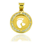Dije de oro de 10 kilates redondo rodeado de piedra circonia.